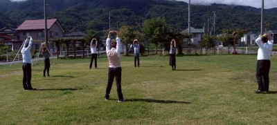 一休みしたら、せっかくなので青空の下みんなで体操。
